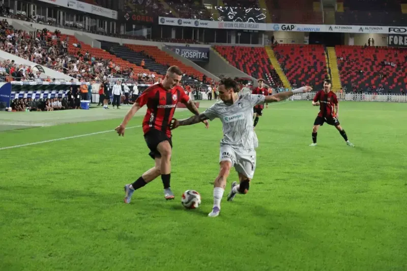 Gaziantep Stadyumu’nda oynanan mücadeleye ev sahibi ekip hızlı başladı. 5. dakikada Maxim’in ortasında Kozlowski topa dokunamadı, 7. dakikada ise Maxim bomboş pozisyonda topu auta gönderdi. 15. dakikada Kocaelispor etkili geldi, Can Keleş’in şutu kaleci Burak’ta kaldı. 25 ve 27. dakikalarda yeşil-siyahlılar gole yaklaşsa da sonuç alamadı. Ev sahibi ise 30. dakikada Sorescu’nun kafa vuruşunda Jovanovic’i geçemedi. İlk yarı golsüz tamamlandı.