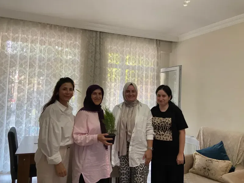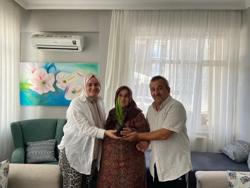 İlçe Kadın Kolları Başkanı Pınar Atabay, beraberindeki yönetim kurulu üyeleriyle birlikte Turgut Mahallesi’nde kadın üyeleri ziyaret ederek çam fidesi takdim etti. Bu anlamlı hediye, hem doğaya katkı sağlama hem de çevre bilincini yaygınlaştırma amacı taşıyor.