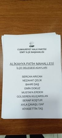 Cumhuriyet Halk Partisi( CHP) İzmit İlçe Örgütü’nde Bugün gerçekleşen delege seçimlerinde 206 üyenin oy kullanma hakkı olduğu Alikahya Fatih Mahallesi’nde 9 delege seçildi. 97 üyenin oy kullandığı seçimde 57 üye beyaz listeye oy verirken, 39 üye ise mavi listeden yana oyunu kullandı. 1 kişi ise boş oy kullanarak kişisel tepkisini ortaya koydu. Delege seçimleri sonucunda beyaz liste seçimi kazandı.
