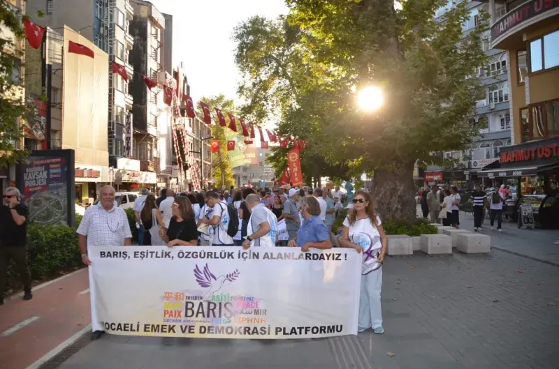 1 Eylül Dünya Barış günü nedeniyle Emek ve Demokrasi Platformu bir dizi program düzenledi. Saat 18.30’da İzmit Yürüyüş yolundan başlayan yürüyüş Sabri Yalım Parkı’ndaki basın açıklaması ile son buldu. Gerçekleşen etkinliğe CHP Kocaeli Milletvekili Muhip Kanko, CHP Kocaeli İl Başkanı Bülent Sarı, DEM Parti Kocaeli Milletvekili Ömer Gergerlioğlu, DEM Parti Eş Başkanı Seda İlgöz, EMEP Kocaeli İl Başkanı İlhami Şahbaz, sendika temsilcisileri ve vatandaşlar katıldı.