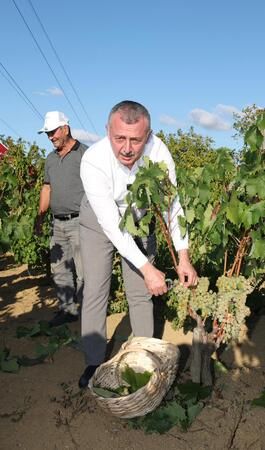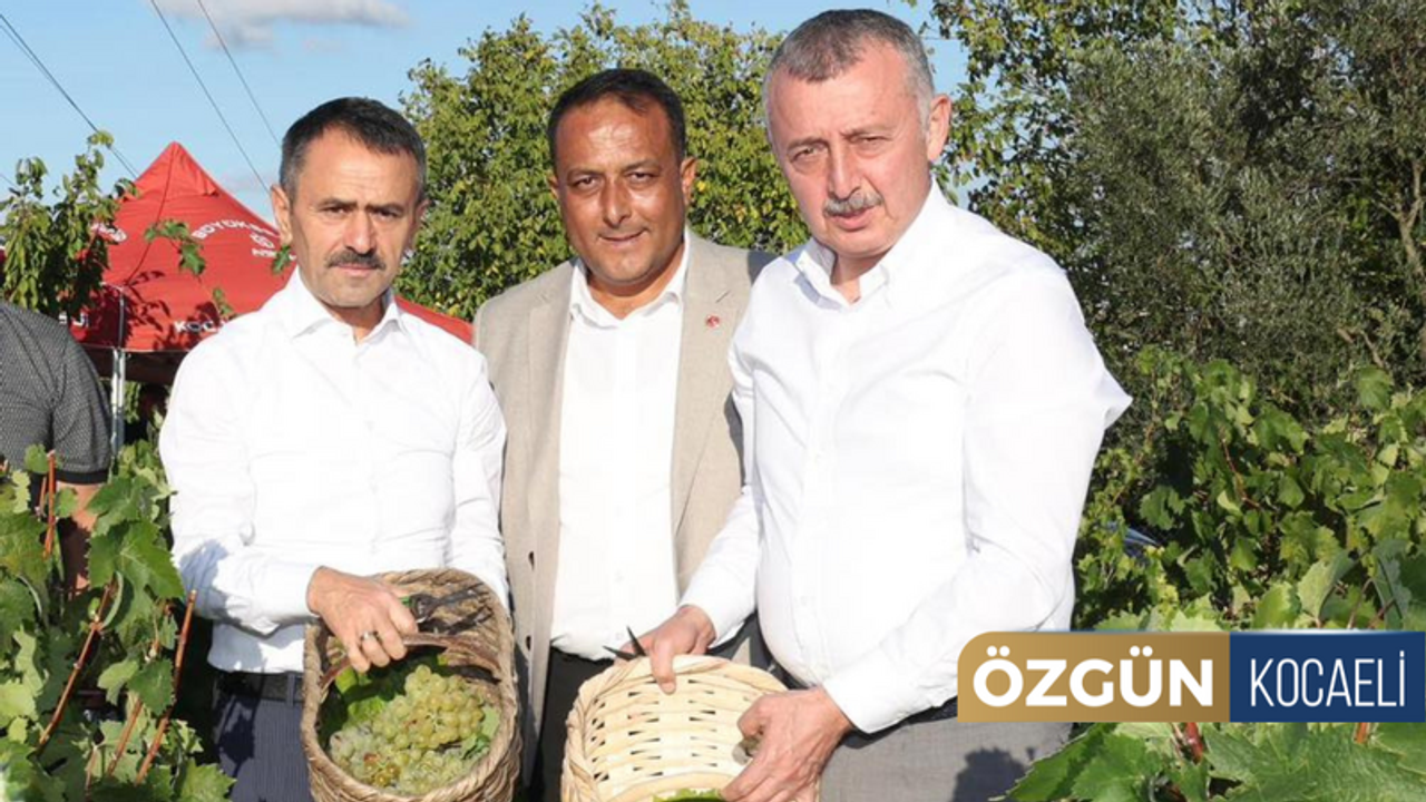 Kocaeli Büyükşehir Belediye Başkanı Doç.Dr. Tahir Büyükakın, Kocaeli Valisi İlhami Aktaş ile birlikte İzmit Kulfallı, Arızlı ve Akpınar’da yetiştirilen Osmanbey, Çavuş, Kınalı Yapıncak, Elhamra ve Balbal üzümlerinin hasadına katıldı. Kendine has aroması ve lezzetiyle bilinen, tüketicilerin yoğun rağbet gösterdiği üzümlerin hasadına katılan Başkan Büyükakın ile Vali Aktaş, bağda üzüm topladı. Üzümlerin hasadı, Kocaeli Büyükşehir Belediyesi’nin gübre ve mazot desteğinden yararlanan üreticilerin yetiştirdiği üzümlerin 1.5 gibi bir sürede olgunluğa ulaşmasının ardından gerçekleşti.