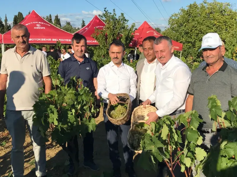 Arızlı Mahallesi’nde Sedat Yazıcı’ya ait 5,5 dönüm bağda gerçekleştirilen üzüm hasadına, Kocaeli Valisi İlhami Aktaş ve Büyükşehir Belediye Başkanı Doç.Dr.Tahir Büyükakın’ın yanı sıra; AK Parti İzmit İlçe Başkanı Halil Güngör Dokuzlar, Büyükşehir yöneticileri, muhtarlar ve üreticiler katıldı. Hasadın bereketli olması temennisinde bulunarak, güzel üzümler yetiştiren üreticileri tebrik eden Başkan Büyükakın, “Çiftçilerimizin alın teriyle yetişen bu güzelliklere şahit olmak bizler için büyük mutluluk. Üreticimizin emeğini büyütmek, toprağımızı verimli kılmak ve tarımsal üretimi geliştirmek için her zaman yanlarında olacağız. Çünkü biliyoruz ki; üretici kazanırsa, Kocaeli kazanır, Türkiye kazanır” dedi. Vali Aktaş da üzüm hasadının hayırlı ve bereketli olmasını diledi. Üzüm yetiştiricileri ise bu sene üzümün veriminden memnun olduklarını belirterek, tarımsal desteklerinden dolayı Başkan Büyükakın’a teşekkür etti.