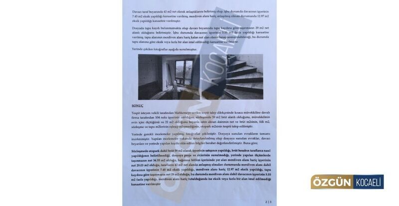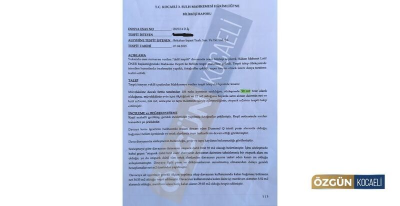 Şirket aleyhine açılan davada mahkeme, yaşanan mağduriyetin tespiti için bilirkişi incelemesi yapılmasına karar verdi. Bilirkişi heyeti, iş yerinde detaylı ölçümler gerçekleştirdi ve ortaya çıkan rapor, vatandaşın yaşadığı mağduriyeti gözler önüne serdi. Hazırlanan bilirkişi raporunda şu ifadelere yer verildi: “Sözleşmede otopark dahil brüt 59 metrekare olarak satışın yapıldığı, ancak brüt hesabın taraflarca nasıl yapıldığının belirtilmediği, dosyaya proje ve eklerinin sunulmadığı, yerinde yapılan ölçümlerde taşınmazın net 34.55 metrekare olduğu, bağımsız bölüm içerisinde yer alan merdiven alanı hariç net 29.03 metrekare bulunduğu, tarafların 42 metrekare net alan üzerinde anlaşmaları durumunda merdiven alanı dahil 7.45 metrekare, merdiven alanı hariç ise 12.97 metrekare eksiklik olduğu kanaatine varıldığı kaydedildi. Bu tespit, vatandaşın sözleşmede belirtilen metrekareden ciddi şekilde daha küçük bir alanla karşı karşıya kaldığını gözler önüne serdi.