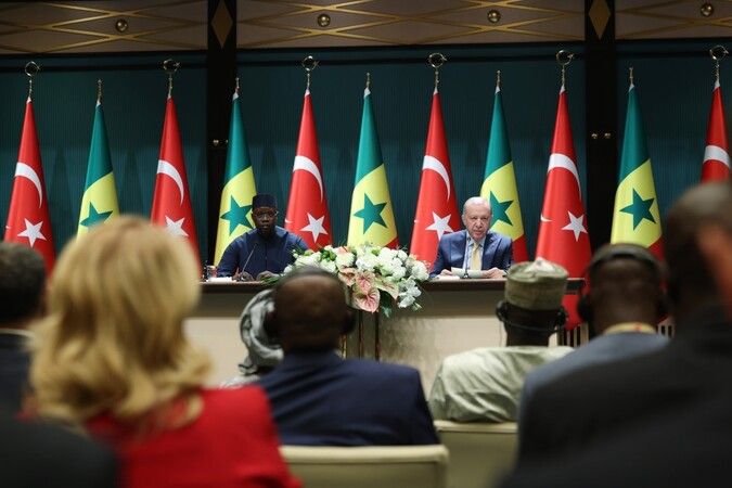 Cumhurbaşkanı Recep Tayyip Erdoğan, Senegal Başbakanı Ousmane Sonko ile ortak basın toplantısında konuştu. Afrika kıtasında kilit role sahip dost ve kardeş ülke Senegal ile ilişkilerin gelişmeye devam ettiğini kaydeden Cumhurbaşkanı Erdoğan, "Senegal Cumhurbaşkanı Sayın Faye’yi geçtiğimiz ekim ayında ülkemizde misafir ettik. Ziyaretle Yüksek Düzeyli Stratejik İşbirliği Konseyi ihdas edilmesiyle ilişkilerimizi stratejik ortaklık düzeyine çıkarmıştık. Bugün yaptığımız istişarelerde yatırım ve ticaret başta olmak üzere güvenlik, savunma sanayi, terörle mücadele, enerji, maden, ulaştırma, tarım ve balıkçılık alanlarında iş birliği imkanlarını Sayın Sonko ile ele aldık. Ayrıca biraz evvel imzalanan belgelerle iş birliğimizin ahdi zeminini daha da sağlamlaştırdık" dedi.