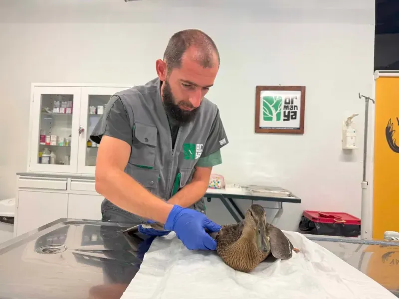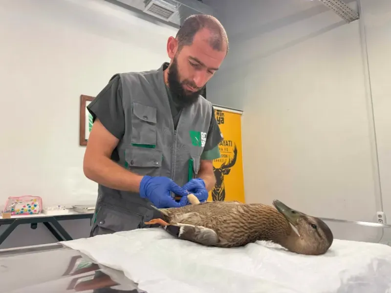 Burada veteriner hekimlerce yapılan muayenede, ördeğin beslenme yetersizliği ve soğuk hava nedeniyle ileri derecede dehidrasyon (sıvı kaybı) yaşadığı belirlendi. Herhangi bir kırık veya doku zedelenmesi bulunmayan ördeğe sıvı ve besin takviyesi yapıldı. İlk müdahalesi yapılan ördek, merkezde rehabilitasyon sürecine alındı. Ördeğin, tedavisi tamamlandıktan sonra Ormanya'daki doğal yaşam alanına salınacağı öğrenildi.