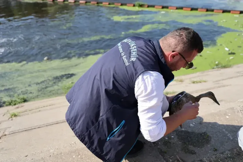 Kocaeli Büyükşehir Belediyesi Çevre Koruma ve Kontrol Dairesi Başkanlığı ekipleri, Kumla Deresi'nde rutin temizlik çalışması yürüttü. Ekipler, bu sırada suda yüzmekte zorlanan bitkin ördeği fark etti. Durumun bildirilmesi üzerine ördek, Ormanya Yaban Hayatı Kurtarma ve Rehabilitasyon Merkezi'ne götürüldü.