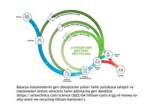 Batarya tedarik zincirinde bileşenlerin yeniden kullanılabileceği birçok nokta vardır ve kullanım ömrü dolan bataryaların otomatik olarak çöp sahalarına gitmesi gerekmez.