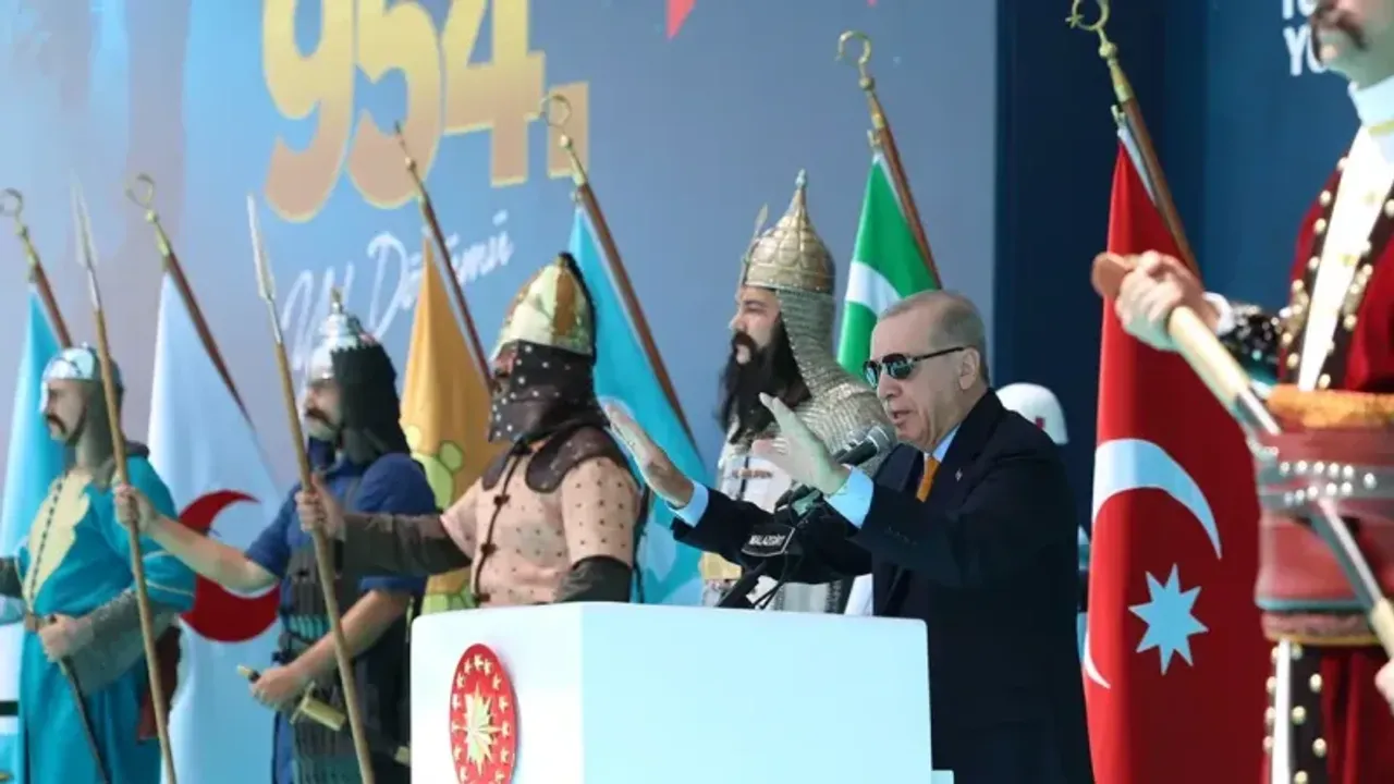"954 yıl önce Malazgirt Ovası’nda yazılan kahramanlık destanından aldığımız cesaret ve öz güvenle istikbale yürüyoruz"