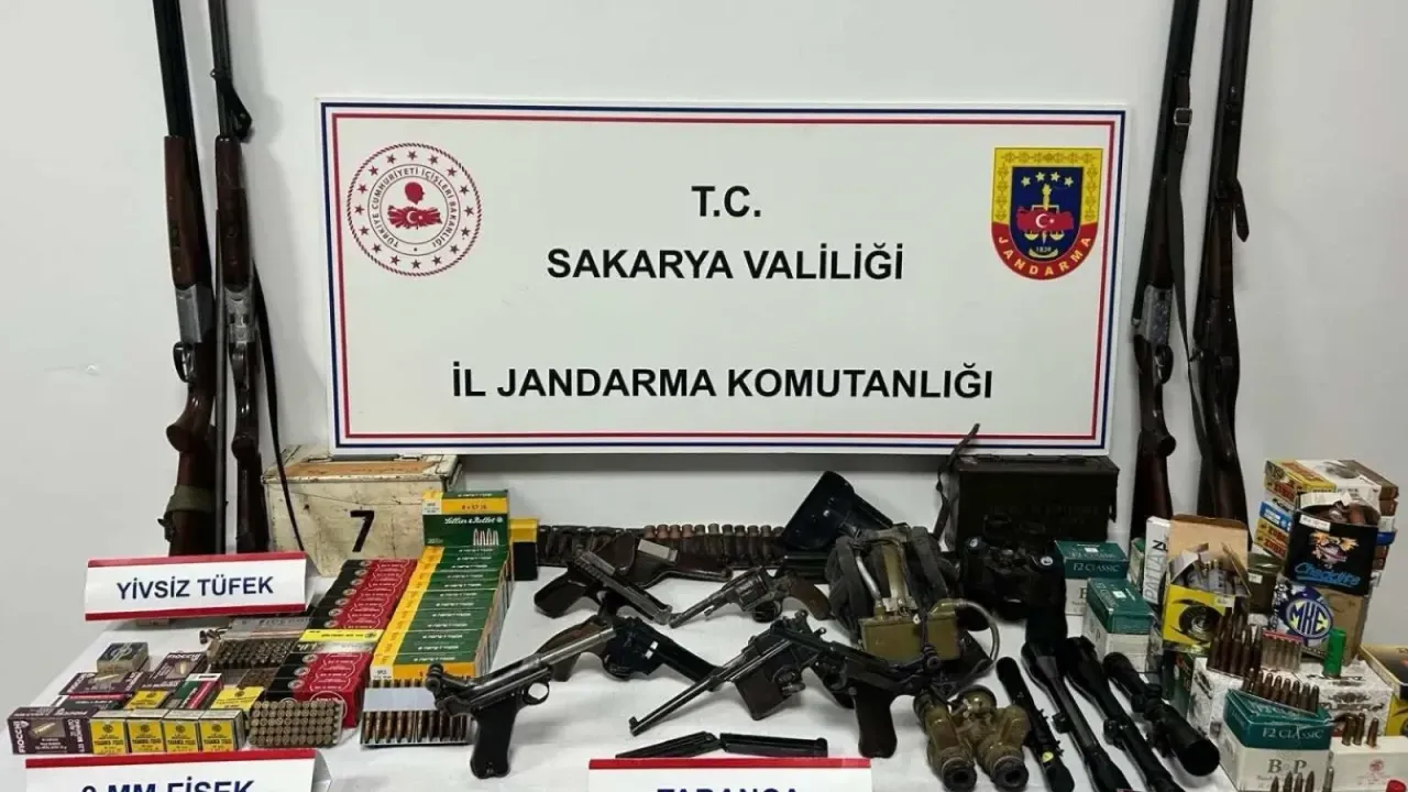 Sakarya İl Jandarma Komutanlığı ekiplerince kaçakçılık ile mücadele çerçevesinde Hendek ilçesi Soğuksu Mahallesi’nde Z.A. (60) isimli şahsın evine operasyon düzenlendi. Şahsın evinde yapılan aramalarda; 6 adet ruhsatsız tabanca, 4 adet ruhsatsız av tüfeği, 5 adet tabanca şarjörü, bin 350 adet tabanca fişeği, 650 adet av tüfeği fişeği, 240 adet fişek/mavzer, 1 adet av tüfeği namlusu, 1 adet yivli uzun namlu, 2 adet dürbün ve 3 adet uzun namlulu silaha ait dürbün ele geçirildi. Operasyonda gözaltına alınan Z.A., jandarmadaki işlemlerinin ardından adliyeye sevk edildi. Çıkarıldığı mahkemece tutuklanan Z.A., cezaevine gönderildi.