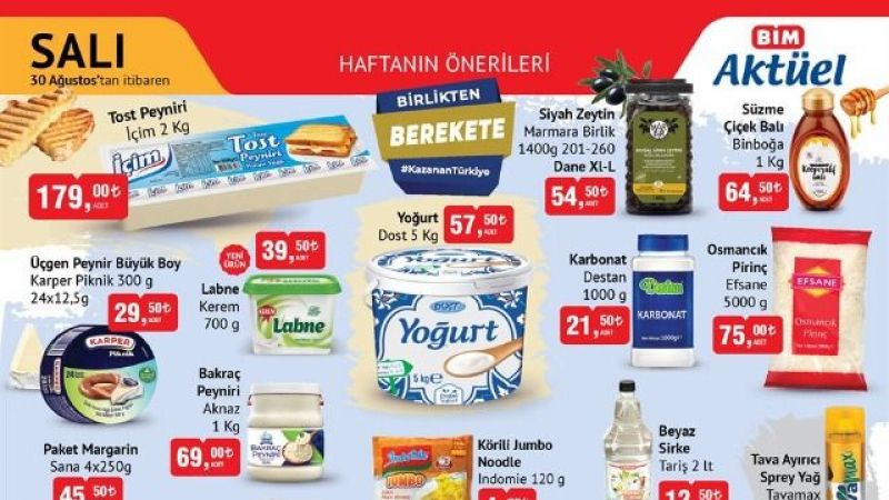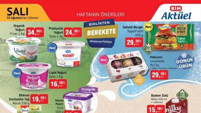 Haftanın Salı ve Cuma günleri bir çok üründe yaptığı indirimlerle vatandaşların cazip alışveriş merkezi olan BİM yeni aktüel ürünler listesini yayınladı. Her hafta yeni bir çok ürüne getirdiği indirimlerle vatandaşlara uygun fiyatla alışveriş imkanı sunan BİM Market, 30 Ağustos 2022 aktüel ürünler listesini yayınladı. BİM'de neler indirime gelecek? BİM aktüel ürünler kataloğunda neler var? BİM aktüel ürünler neler? İşte 30 Ağustos 2022 BİM aktüel ürünler kataloğu şu şekilde;