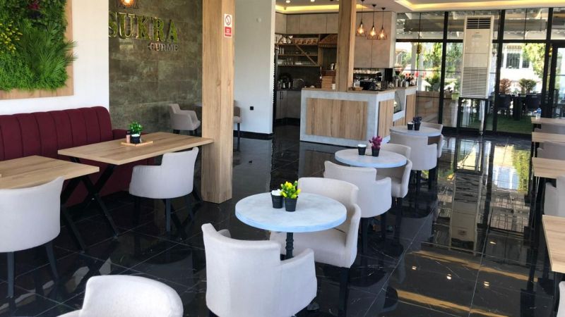 Sukre Gurme’nin kafe kısmında ise yöresel ve dünya lezzetlerinin buluştuğu bir mutfak yer alıyor. Yeni dizaynıyla misafirlerine konforlu, geniş ve ferah bir alan sunan Sukra Gurme’de aynı anda dış bahçeleriyle birlikte 300 kişiye kadar hizmet verilebiliyor.