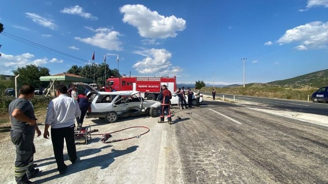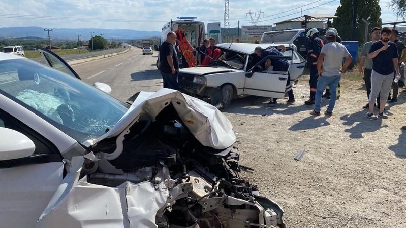 Çarpışmanın şiddetiyle savrulan iki otomobilde büyük çapta maddi hasar meydana gelirken, otomobilde sıkışan 3 kişi de yaralandı