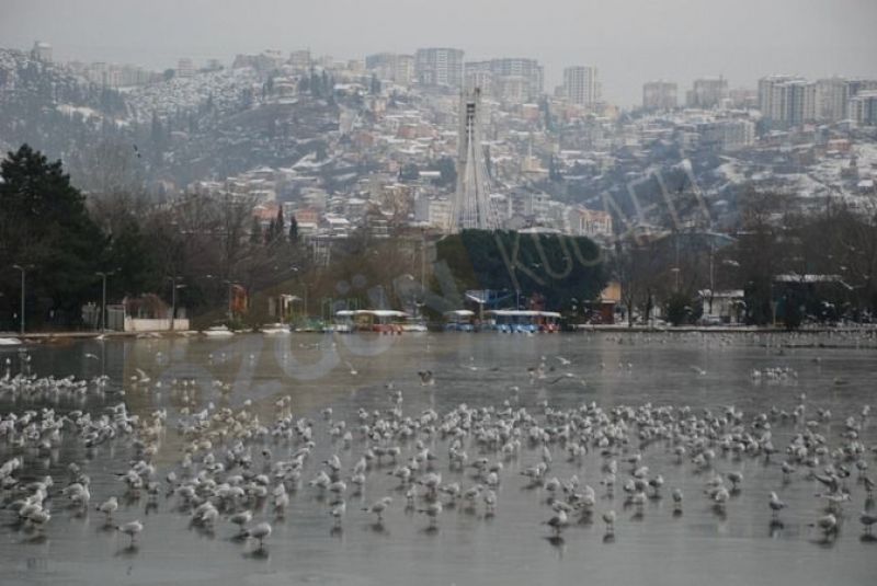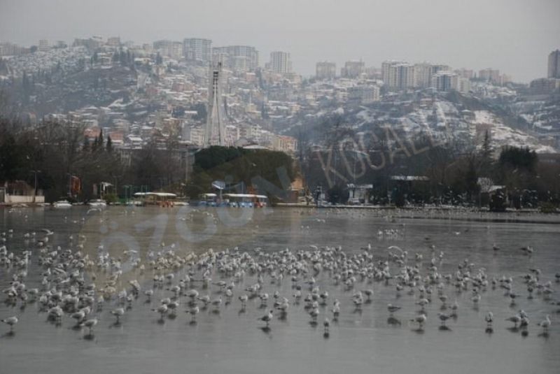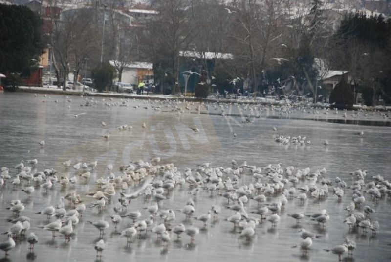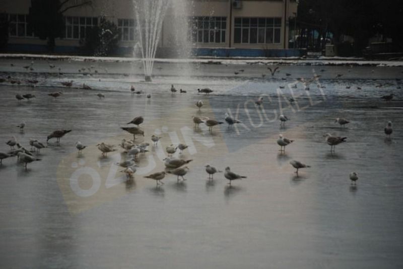 Yurt genelinde ve Marmara bölgesinde hafta sonu etkili olan ve 3 gün boyunca devam eden kar yağışı, yerini soğuk havaya bıraktı. Sabah saatlerinde-6 ile -2 derece arasında devam eden sıcaklıklarda bazı bölgelerde buzlanmaya neden oldu. İzmit ilçesinde bulunan Kocaeli fuar alanında ki 38 bin 800 metrekarelik yapay Gölet’in de yüzeyi, sabah saatlerinde gece boyunca etkili olan soğuk hava nedeniyle buz tuttu. Gölün müdavimi olan martı ve karabatakların, buz yüzeyinde yürüyerek yiyecek aradığı gözlendi.