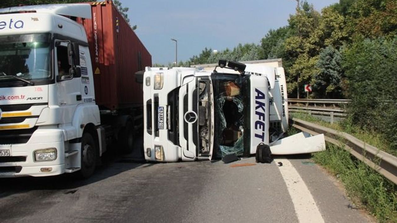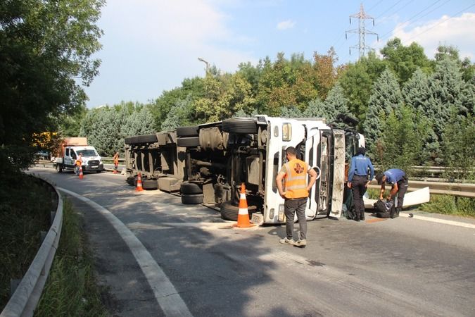 Kaza, TEM Otoyolu bağlantı yolu İstanbul istikametinde meydana geldi. Edinilen bilgiye göre, A.Ö. idaresindeki 63 ABK 210 plakalı Mercedes marka tır, sürücüsünün direksiyon hakimiyetini kaybetmesiyle devrildi.