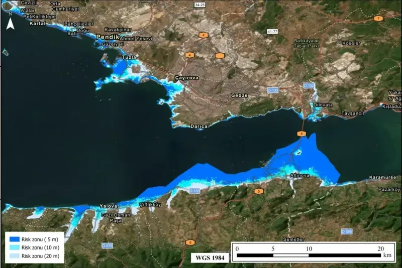 Muğla Sıtkı Koçman Üniversitesi (MSKÜ) Coğrafi Bilgi Sistemleri ve Uzaktan Algılama Merkezi (CBS-UZAL) tarafından, İstanbul ve Marmara kıyılarını kapsayan tsunami risk haritası geliştirildi. Çalışmada, Kocaeli ve ilçeleri de dahil olmak üzere, Marmara'da meydana gelebilecek büyük bir depremin ardından oluşabilecek tsunami dalgalarının etkileyebileceği taşkın alanları belirlendi.