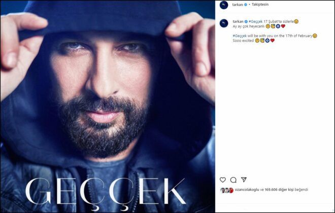 Tarkan son olarak yaptığı paylaşımla yeni şarkısının adını da duyurdu. İsmi ‘Geççek’ olan şarkı, 17 Şubat’ta dinleyicilerle buluşacak.