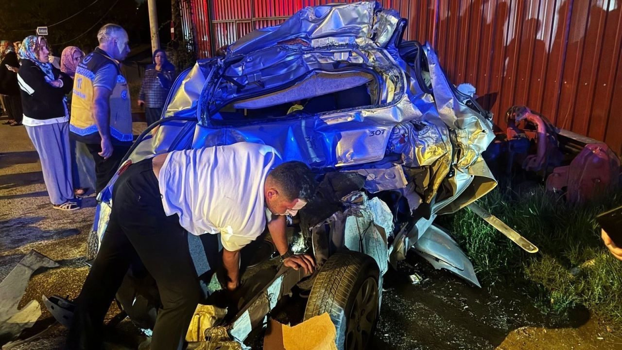 Çarpmanın etkisiyle savrulan araç, karşı şeride geçerek burada kırmızı ışıkta bekleyen 81 ACS 161 plakalı tırın çekici kısmına çarptı. İki yönlü çarpışmanın ardından otomobil adeta kağıt gibi ezilerek hurdaya döndü. Araçta yalnızca sürücü mahalli sağlam kalabildi.