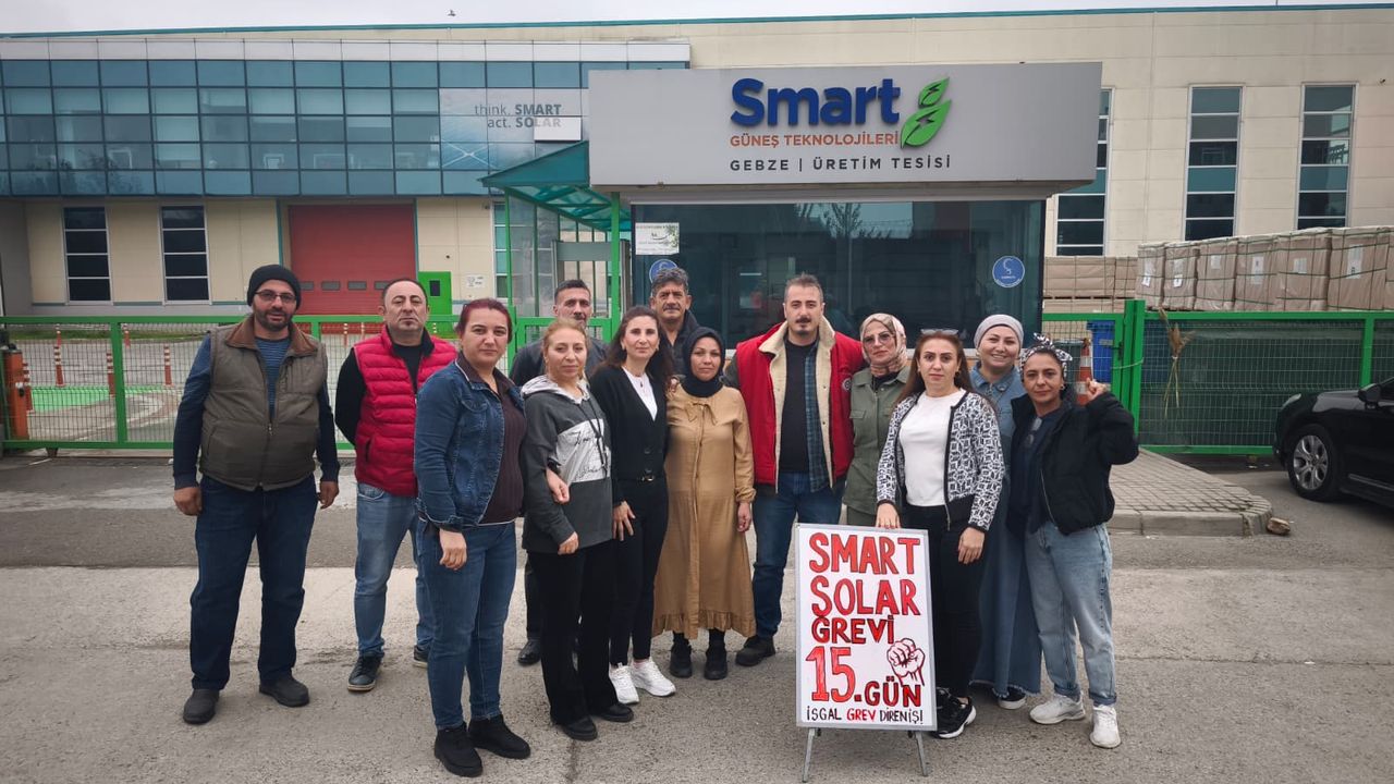 Güneş paneli ve elektrik enerjisi sistemleri üreticisi Smart Solar fabrikasında toplu sözleşme görüşmelerinin tıkanması sonrasında Birleşik Metal-İş üyesi Smart Solar işçileri, patronun yüzde 6’lık zam dayatmasına karşı 22 Ekim’de greve başladı. Gebze’deki fabrikada üretim tamamen durdu. Patronun ilk altı aylık dönem için tüm üyelere yalnızca net 3 bin lira zam, sonraki dönemlerde ise sadece enflasyon oranında artış ve refah payı verilmemesi şartı adeta emekçilerle alay eder gibi bir teklif olarak sunuldu. Sendika ve işçiler bu teklifin ekonomik gerçeklerden ve işçilerin yaşam koşullarından tamamen kopuk bir dayatma olduğunu vurguladı. 260 işçi, net yüzde 50 oranında ücret artışı talep ediyor. İşçiler, artan kiralar, eğitim ve gıda giderleri karşısında mevcut ücretlerin geçinmeye yetmediğini dile getiriyor. Smart Solar işçileri, insanca yaşanacak bir ücret için mücadelelerini kararlılıkla 15’inci gününde de sürdürüyor. Grevle ilgili gazetemize konuşan Birleşik Metal İş Smart Solar Fabrika Temsilcisi Hasret Kala, “Nöbetlerimizi üç vardiya çalışma düzenimiz gibi yapıyoruz. Kadın arkadaşlarımız gündüzleri burada oluyor daha çok. Hepimiz dayanışma içerisinde hakkımızı alana kadar buradan bir yere gitmeyeceğiz. Şuan için bir değişiklik yok. İşveren tarafından da bir çağrı almadık. Bizim içeride 22 günlük alacağımız vardı, onu vermediler. Bugün maaş günü geldi. Eğer bu alacağımızı patron bugün de hesabımıza yatırmazsa holdingin Kavacık’ta bulunan merkezini işçi arkadaşlarımızla basacağız.