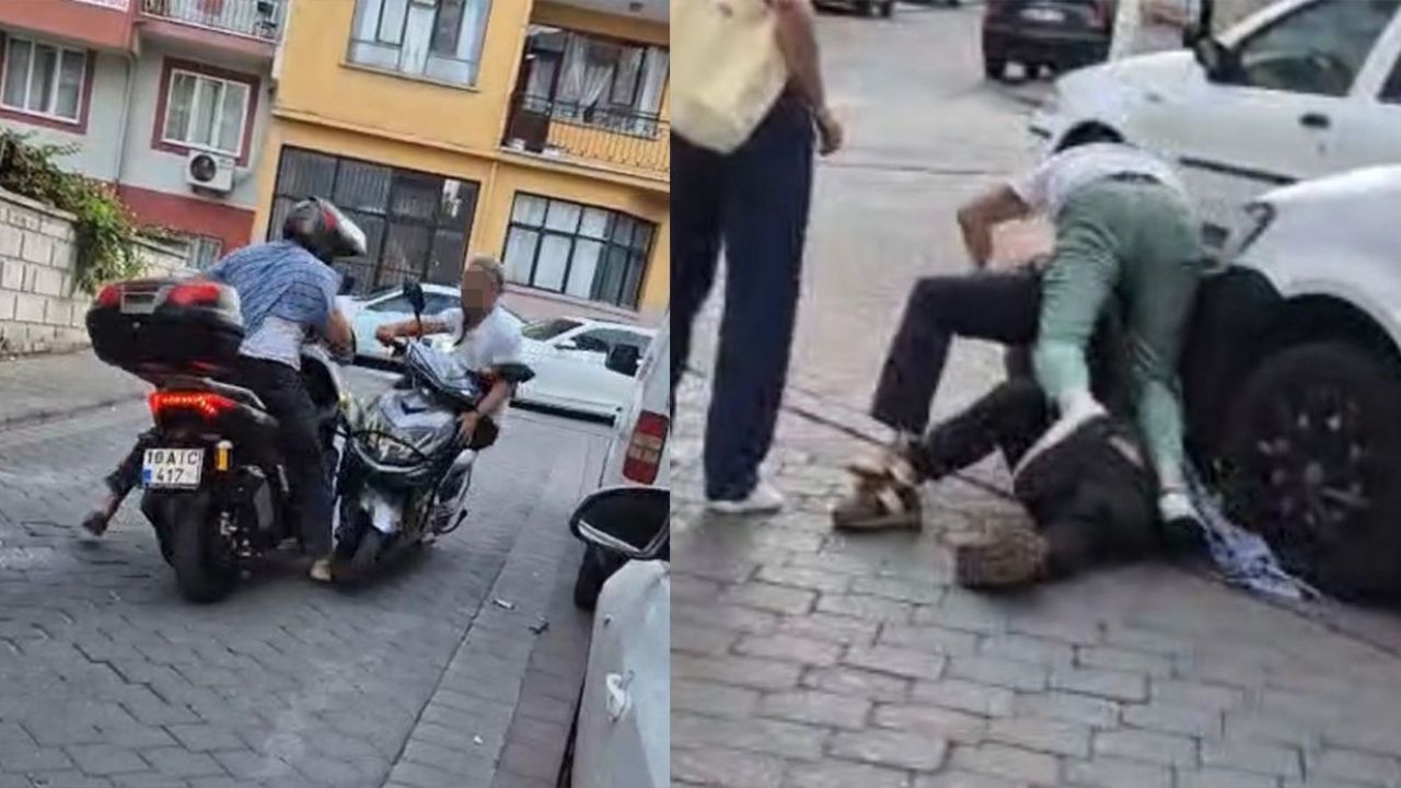 Sokak ortasında yaşanan dehşet anları, bir vatandaşın cep telefonuna yansıdı. Görüntülerde, iki motosikletin kafa kafaya çarpıştığı, ardından yerde devam kavga ve 3'üncü kişinin gelip elindeki bıçağı yaralı şahsın sırtına sapladığı anlar yer aldı.