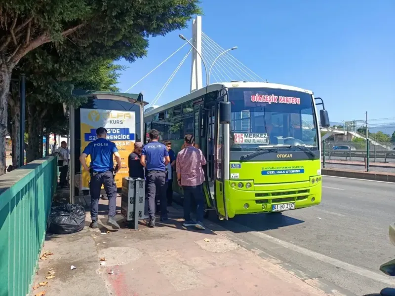 İzmit Ömerağa Mahallesi'nde bugün öğle saatlerinde korku dolu anlar yaşandı. Kartepe-İzmit hattında çalışan halk otobüsü şoförü Adem K., yolcusu ile tartıştı. İddiaya göre, şoför yolcusunu demir sopayla kovaladı. Bu olay sonrası ihbar üzerine polis ekipleri bölgeye sevk edildi. Polis ekipleriyle karşılaşan Adem K., direnerek mukavemet gösterdi. Daha sonra minibüste kendini rehin alarak eline aldığı bıçağı boynuna dayadı. Olayın ardından bölgeye çok sayıda polis ve müzakereci sevk edildi. Ekiplerin uzun süren ikna çabaları sonucunda Adem K., bıçağını bırakarak teslim oldu.