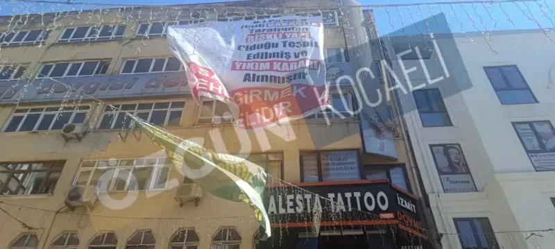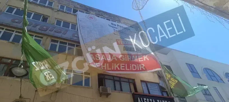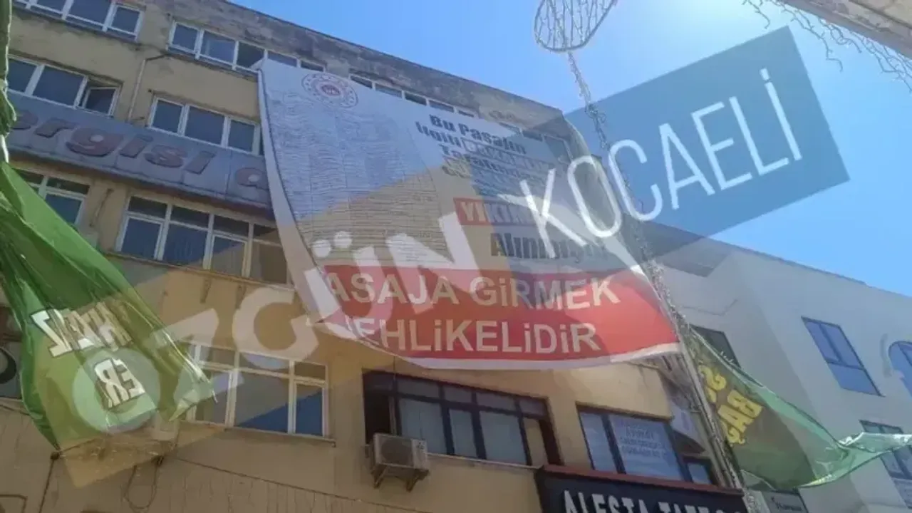 "Bu pasajın ilgili bakanlık tarafından riskli yapı olduğu tespit edilmiş ve yıkım kararı alınmıştır. Pasaja girmek tehlikeli ve yasaktır."