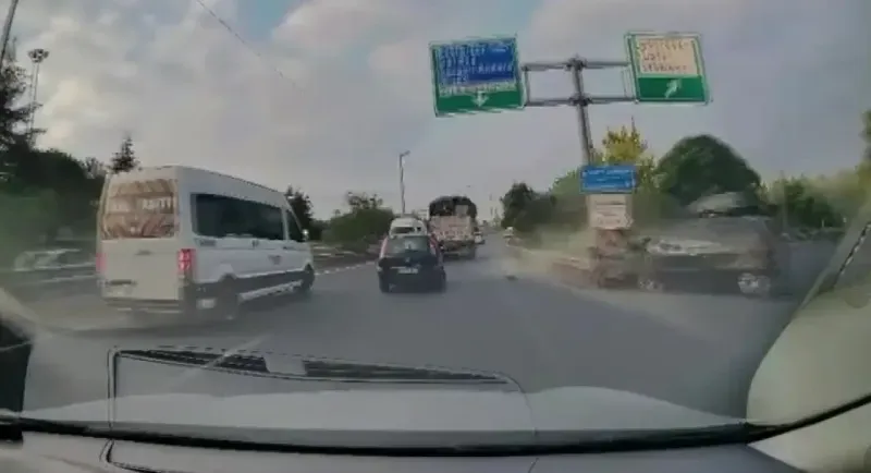 Kocaeli’nin Gebze ilçesinde ana yola bağlanmaya çalışan otomobil, seyir halindeyken bir kamyonla çarpışmaktan kaçarken kaza yaptı. Otomobil demir bariyerlere girerken o anlar araç içi kamerasına yansıdı. Kazayı gören diğer sürücüler 112 Acil Çağrı Merkezi'ne haber verdi. İhbar üzerine olay yerine sağlık ve jandarma ekipleri sevk edildi. Yaralıya ilişkin bilgiye ulaşılmazken, olayla ilgili inceleme başlatıldı.