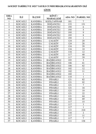 Cumhurbaşkanı Recep Tayyip Erdoğan’ın imzasıyla yayımlanan karar, Kandıra’da kurulacak Rüzgar Enerji Santrali’nin (RES) kapasite artışına yönelik oldu. Buna göre ilçede yer alan bazı mahallelerde toplam 37 taşınmaz için acele kamulaştırma süreci başlatıldı.