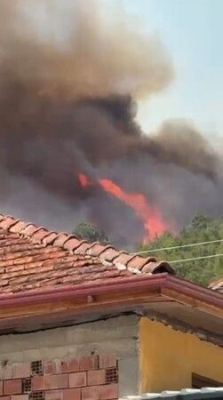 Orman Bölge Müdürlüğü ve itfaiye ekiplerinin, yangın söndürme helikopteri ve çok sayıda arazözle alevleri yerleşim yerlerinden uzaklaştırmak ve yangını kontrol altına almak için yoğun çabası devam ediyor.
