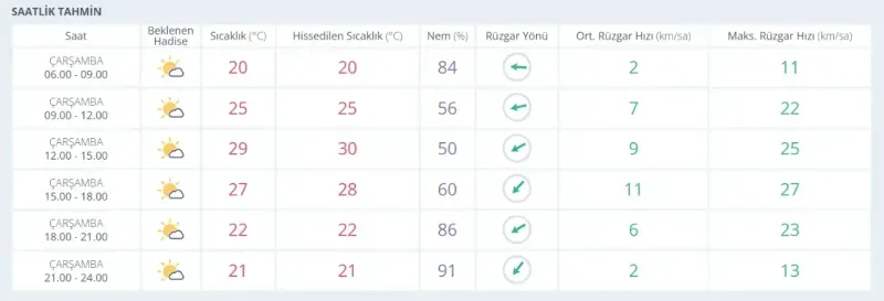 Saat 09.00-12.00 aralığında hava sıcaklığı 25 dereceye ulaşacak. Öğle saatlerinde ise az bulutlu hava ile birlikte sıcaklık 30 dereceye kadar yükselecek.