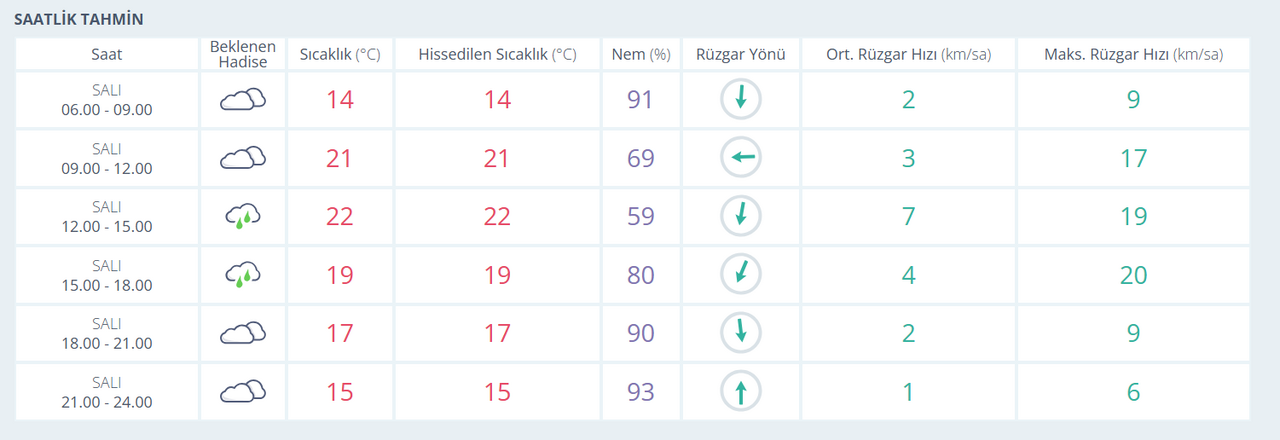 Sabah saatlerinde sıcaklık 13,7 derece olarak ölçülürken, nem oranı %97 seviyelerine kadar ulaştı. Gün içerisinde hava sıcaklığının en yüksek 22 dereceye çıkması, akşam saatlerine doğru ise 17 dereceye kadar düşmesi bekleniyor.