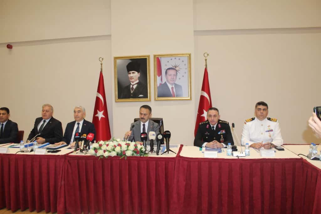 Vali İlhami Aktaş toplantıda yaptığı konuşmada, “Geçtiğimiz dönem içinde asayiş çalışmaları kapsamında toplamında 232 değişik ebatlarda tabanca ve tüfek ele geçirilmiş 268 kişi hakkında işlem yapılmıştır. Emniyet ve jandarma operasyonlarında 21 kişi tutuklanması sağlanmış çeşitli ebatlarda makaron, kaçak ürün ele geçirilip ele konulmuştur.