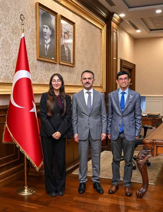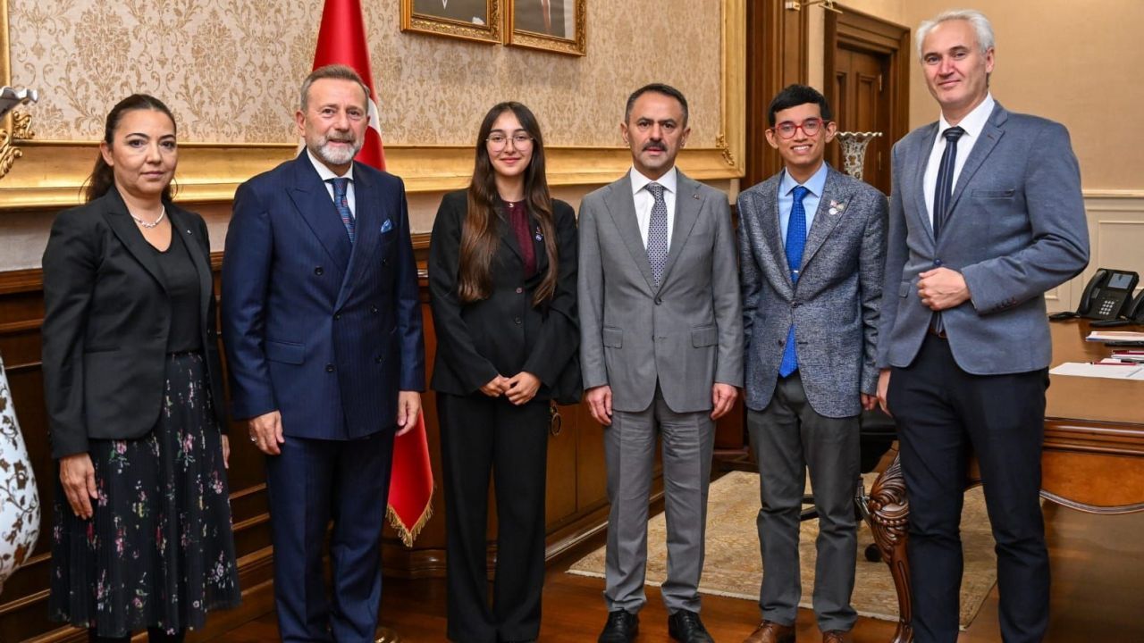 Geliştirdikleri bilimsel projeyle NASA’ya davet edilen TED Darıca Koleji Anadolu Lisesi Arda Çetin Kaya ve takım arkadaşı İstanbul Göztepe İhsan Kurşunoğlu Anadolu Lisesi öğrencisi Buket Atalay ile birlikte Vali İlhami Aktaş’ı ziyaret ettiler.
