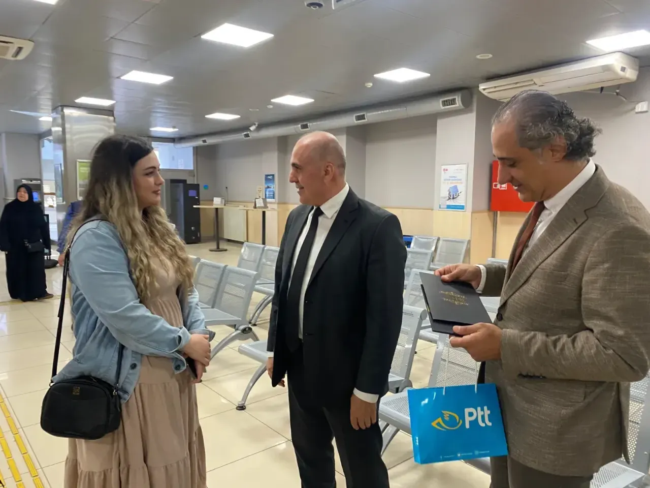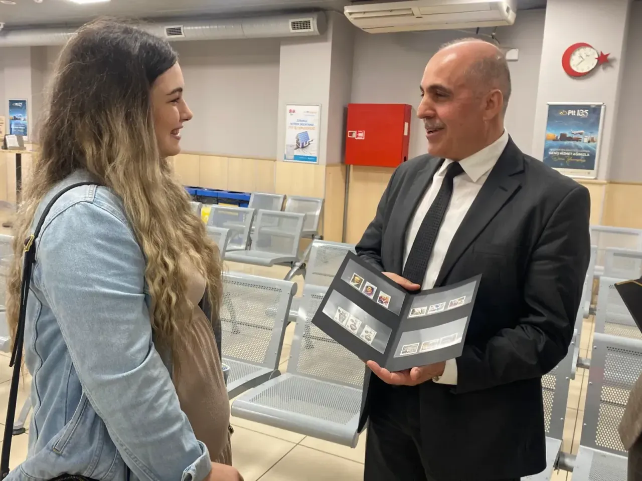 Emzirme ödeneği işlemleri için merkeze gelen Senanur Oğuz, sıra numarasının yanmasıyla birlikte günün 185’inci müşterisi oldu. PTT Kocaeli Başmüdürü Necati Yoldaş, Oğuz’u tebrik ederek kendisine posta pulu albümü ve çeşitli hediyeler verdi.