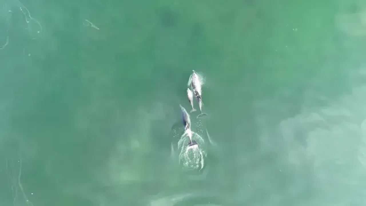 İzmit Körfezi’nde sabahın ilk ışıklarıyla birlikte suyun yüzeyinde beliren üç yunus, dalgalarla yarışır gibi sıçrayarak eşsiz bir gösteri sergiledi. Biri henüz yavru olan bu sevimli deniz canlıları, zaman zaman suyun üzerinde yan yana süzülüp bazen de aniden derinlere dalarak adeta masmavi denizin ritmine ayak uydurdu. O anlar, havadan dron ile görüntülenerek doğanın en huzurlu karelerinden biri haline geldi.