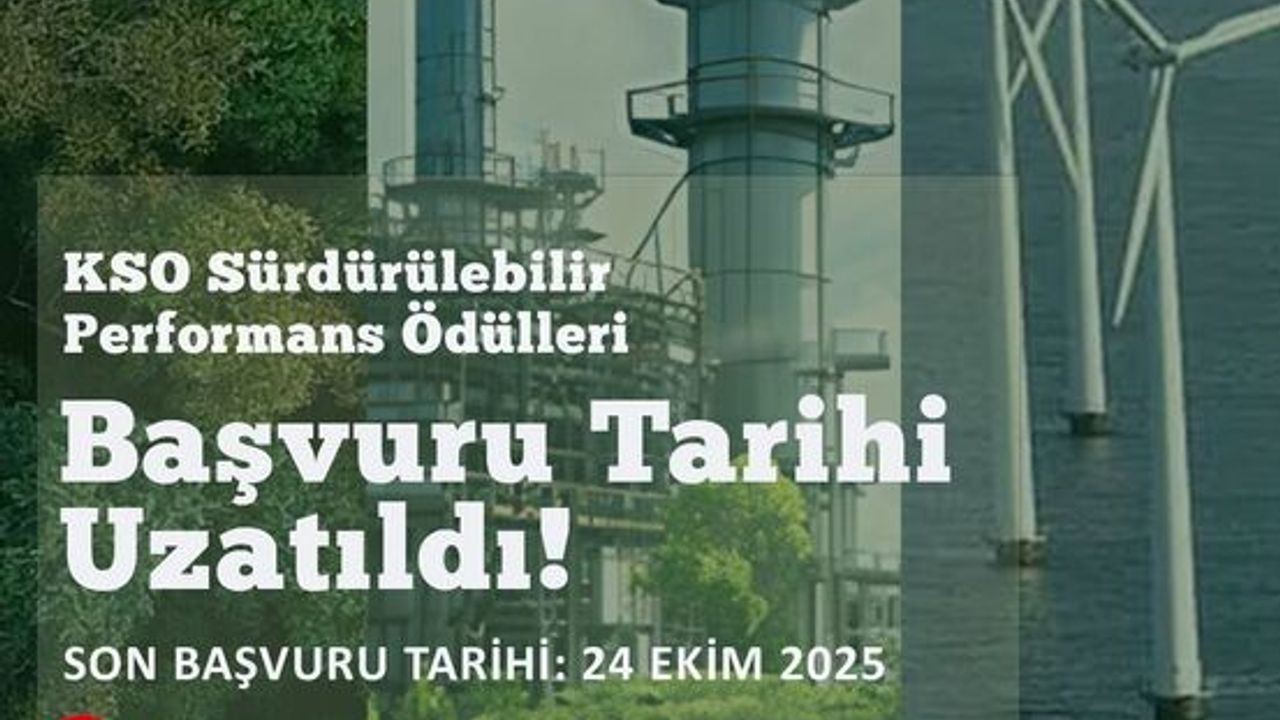 KSO Sürdürülebilir Performans Ödüllerine başvurular devam ediyor. Organizasyona başvuru süresi 24 Ekim 2025 tarihine kadar uzatıldı. Kocaeli Sanayi Odası Sürdürülebilir Performans Ödülleri organizasyonun amacı; sürdürülebilir kalkınma araçları çerçevesinde; finansal faktörler kadar çevresel, sosyal ve kurumsal yönetim faktörlerini de çalışmalarına başarıyla entegre edebilen firmalarımızı teşvik etmek ve sanayide sürdürülebilirlik bilincinin yaygınlaştırılmasına katkıda bulunmaktır.