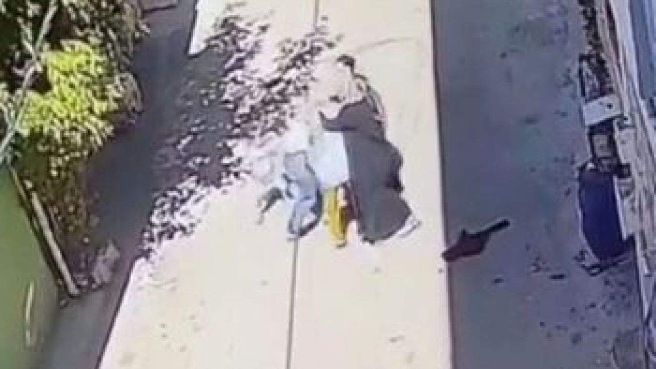 Saldırganlar, anneye tekme ve yumruklarla saldırırken, anne çocuğunu korumak için onu yere bırakmak zorunda kaldı. Küçük çocuk, annesinin çığlıklarını izlerken gözyaşlarına boğuldu. Olay, bir apartmanın güvenlik kamerasına saniye saniye yansıdı.