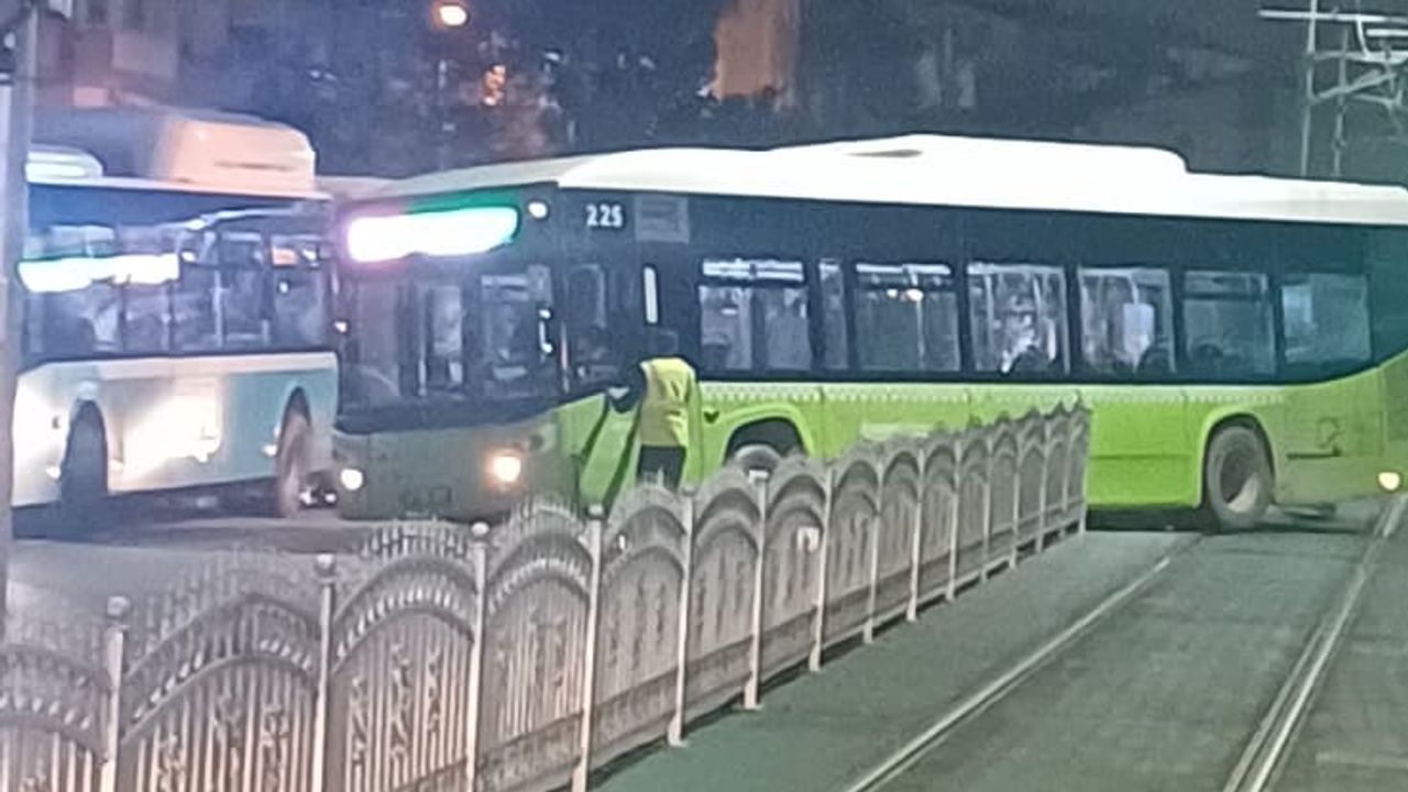 Kocaeli’nin İzmit ilçesi Kuruçeşme mahallesinde, tramvay hattı yan yolunda belediye otobüsü kaza yaptı.