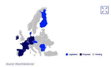 Wood Mackenzie Avrupalı rafinerilerin düzenlemelere uymak için yılda yaklaşık 0,5 milyon ton (Mtpa) yeşil hidrojen gerekeceğini tahmin etmektedir. Bu, Avrupa'nın mevcut rafinerilerde CO2 emisyonu üreten, özel olarak üretilen hidrojenin yaklaşık %30'unu değiştirecek ve yeşil hidrojen üretim kapasitesi için 15 milyar ABD dolarından fazla önemli bir yatırım gerektirecektir.