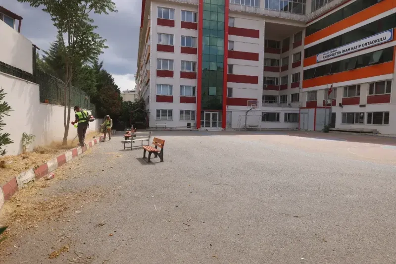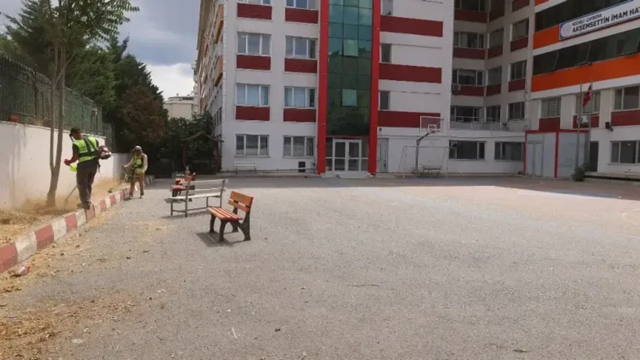 Çayırova Belediyesi Park ve Bahçeler Müdürlüğü ekipleri, yaklaşan eğitim-öğretim dönemi öncesinde okul bahçelerinde yabani ot biçme ve temizlik çalışması gerçekleştiriyor.