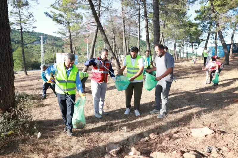 Olası yangınların önüne geçmek için bölgedeki ormanlık alanlarda yapılan kapsamlı çalışmalarda cam şişe, cam kırıkları, plastik şişe, dal ve kuru ot gibi yanıcı olabilecek maddeler ile çöpler toplandı.