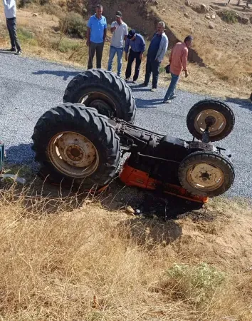 Kontrolünü kaybedince traktör devrildi