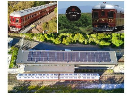 Bir başka örnek Avustralya'nın Byron Bay kentinde bulunan ve elektrikli tahrik sistemine güç sağlamak için trenin çatısına yerleştirilen güneş panellerini kullanan Güneş Treni'dir.