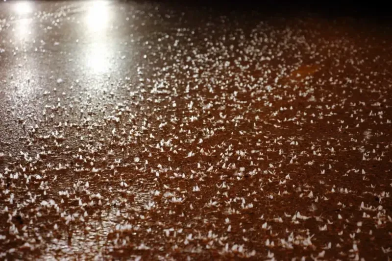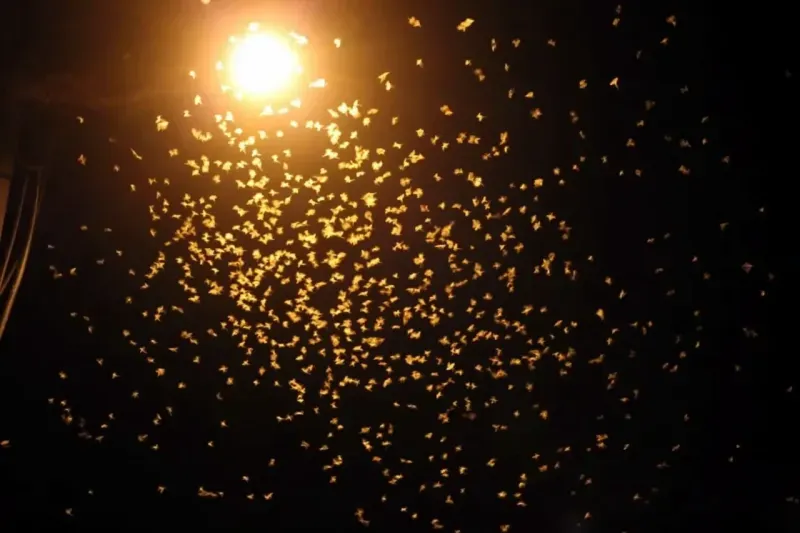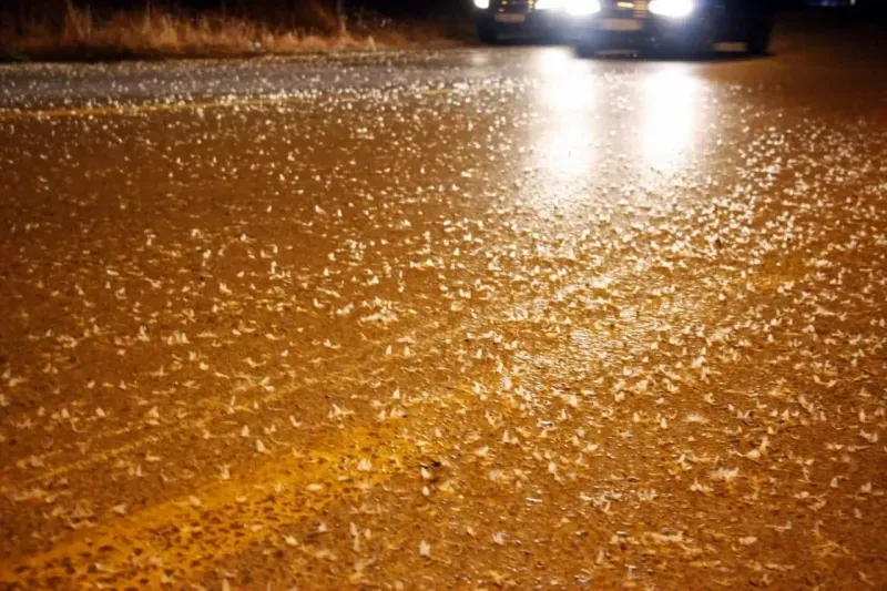 Sakarya'da her yıl temmuz ve ağustos ayında yaşanan Sakarya Nehri üzerinden uçan milyonlarca 'Birgün' sineğinin sokak ışıklarının çevresindeki son uçuşlarını yaparak topluca öldükleri doğa olayı bu yıl da devam etti. Ömürlerinin yüzde 99'unu larva halinde suda geçiren birgün sinekleri, 1 ila 3 yıllık erginleşme sürecini tamamlayarak Sakarya Nehri'nden çıktı. Her sene Adapazarı ilçesinde bulunan Sakarya Köprüsü üzerinde görülen birgün sinekleri bu kez ise Akyazı Taşburun Köprüsü üzerinde görüldü. Gelişimlerini suda tamamlayan birgün sinekleri, döngülerinin son ve en kritik evresi olan çiftleşme ritüelini gerçekleştirdi. Aydınlatma direklerinin çevresinde toplanan binlerce sineğin ‘ölüm dansı' gerçekleşti. Her yıl tekrarlanan ve birgün sineklerinin adeta kar yağışını anımsatan ‘ölüm uçuşu' görsel şölen oluşturdu.