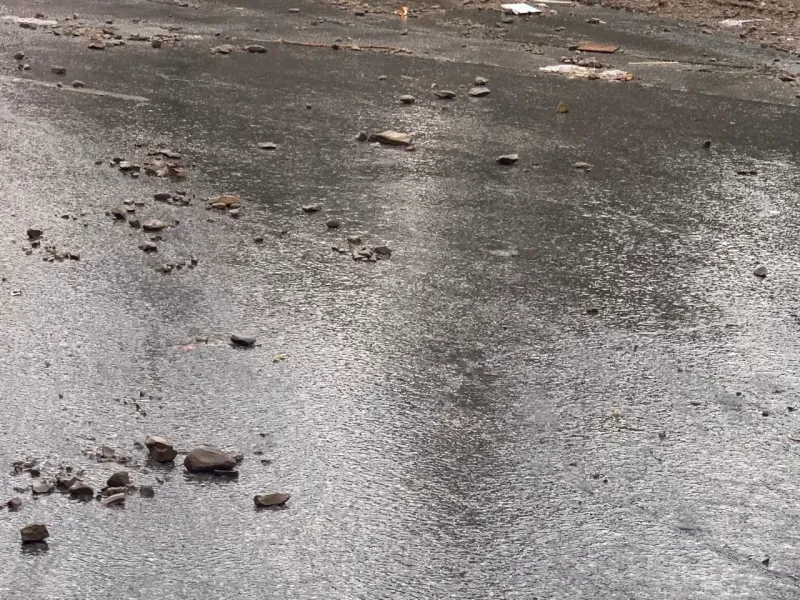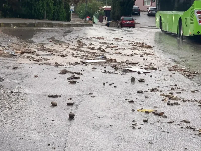 Bölgenin eğimli yapısı nedeniyle toprak alanlardan sürüklenen taşlar, yol üzerine savruldu. Özellikle çakıllar ve iri taş parçaları, yaya ve araç geçişlerini zorlaştırırken, yolun bazı noktalarında ulaşımı tehlikeli hale getirdi. Vatandaşlar, taşların yamaçtan akarak biriktiğini belirtti.
