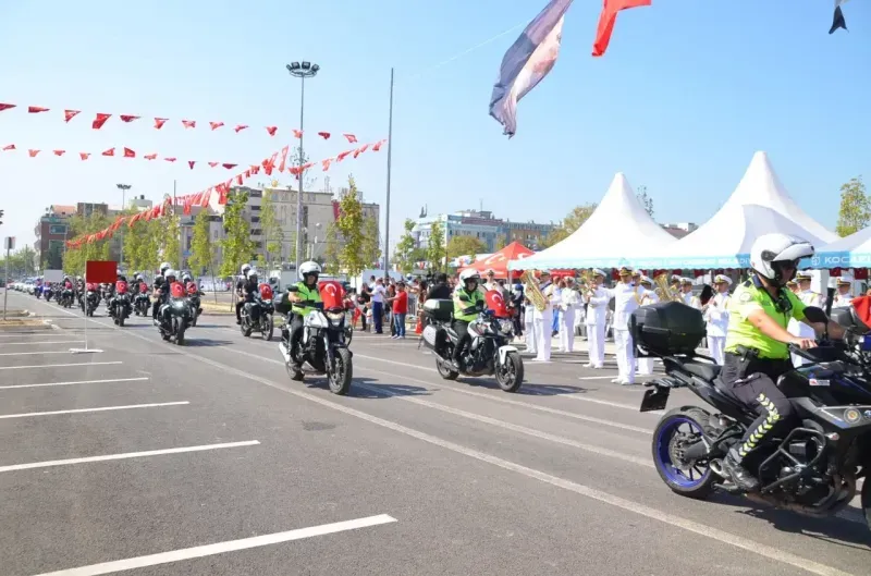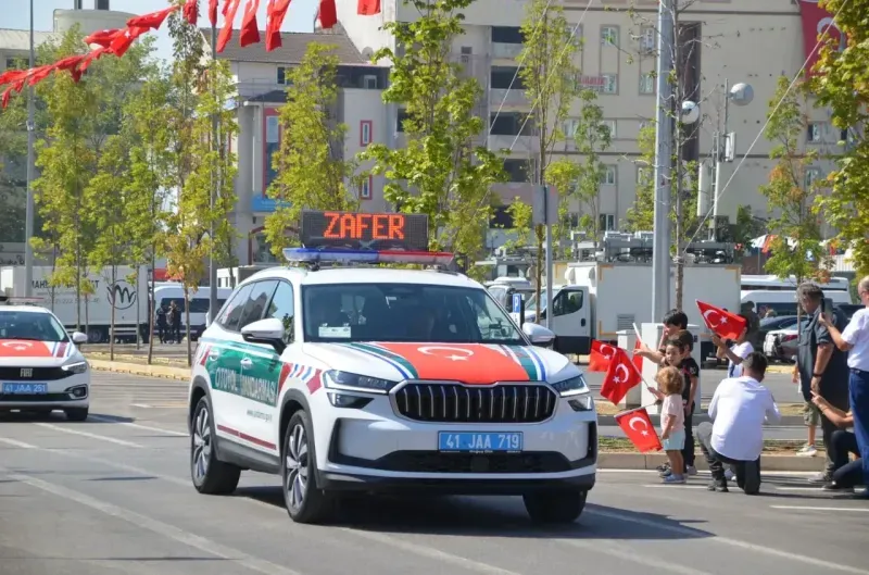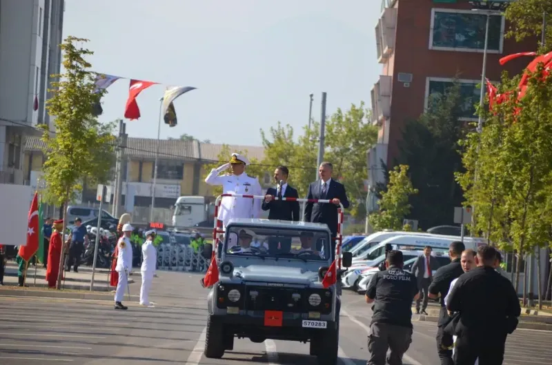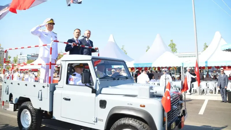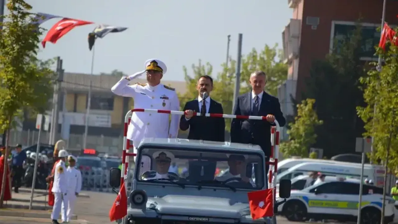 Araç üzerinde vatandaşları selamlayan Kocaeli Valisi İlhami Aktaş’a Deniz Eğitim - Öğretim ve Garnizon Komutanı Tuğamiral Selçuk Akarı ile Büyükşehir Belediye Başkanı Tahir Büyükakın eşlik etti.