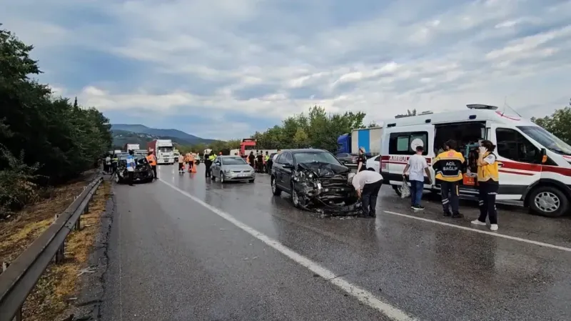 Kaza, sabah saatlerinde Anadolu Otoyolu Sapanca geçişinde meydana geldi. Edinilen bilgiye göre, Ankara istikametinde ilerlemekte olan toplam 10 araç, yağışında etkisi ile kayganlaşan yolda zincirleme trafik kazasına karıştı. Durumun haber verilmesi üzerine bölgeye otoyol jandarma ve çok sayıda sağlık ekibi sevk edildi. Bölgeye ulaşan sağlık ekiplerince kazada yaralanan 10 kişiye olay yerinde ilk müdahaleleri yapıldı. Yaralılar, çeşitli hastanelere kaldırılarak tedavi altına alındı. Kaza sebebi ile bir süre ulaşıma kapanan Ankara istikametinde uzun araç kuyrukları oluştu. Kazaya karışan araçların yoldan kaldırılması ile birlikte trafik tekrar normal seyrine döndü.