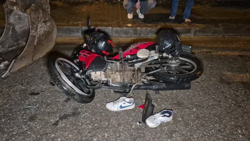 Kaza, gece saatlerinde Beyciler Mahallesi Çavuşlar TOKİ'de meydana geldi. Edinilen bilgilere göre, Murat Can Y. idaresindeki 81 ACF 864 motosiklet ile evine giderken sağanak yağış nedeniyle görüş mesafesi düşünce park halindeki yaklaşık 10 tonluk iş makinesini fark etmeyerek arkadan çarptı. Çarpışmanın etkisiyle sürücü Murat Can Y. ile motosiklette yolcu olarak bulunan Oktay Y. yere savrularak yaralandı. Çarpışma seslerini duyan sokak sakinleri hemen 112 Acil Çağrı Merkezi'ne ihbarda bulundu. Kaza yerine sağlık ve polis ekipleri sevk edildi. Yaralılara olay yerinde ilk müdahalesini yapan sağlık ekipleri yaralılar ambulans ile Atatürk Devlet Hastanesi'ne kaldırdı.