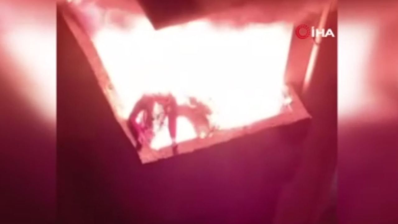 Cep telefonu ile çekilen görüntülerde, üç kişinin balkonda alevlerin ortasında kaldığı anlar görülüyor. Görüntülerde, yardıma koşan vatandaşların aşağıda battaniye açarak Kaplan ve Ar’dan, bebeği aşağı atmalarını istediği de yer aldı.