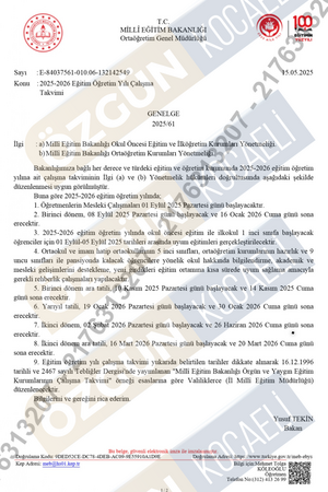 Milli Eğitim Bakanlığı (MEB), 2025-2026 eğitim öğretim yılı takvimini yayımladı. Yusuf Tekin imzasıyla il milli eğitim müdürlüklerine gönderilen genelgeye göre, öğrenciler için ilk ders zili 8 Eylül 2025 Pazartesi günü çalacak.