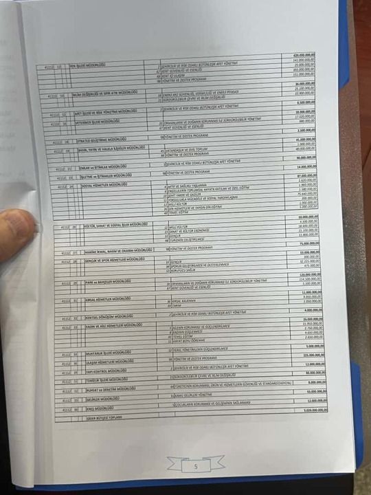 5. Mali Hizmetler Müdürlüğü – 436.000.000 TL